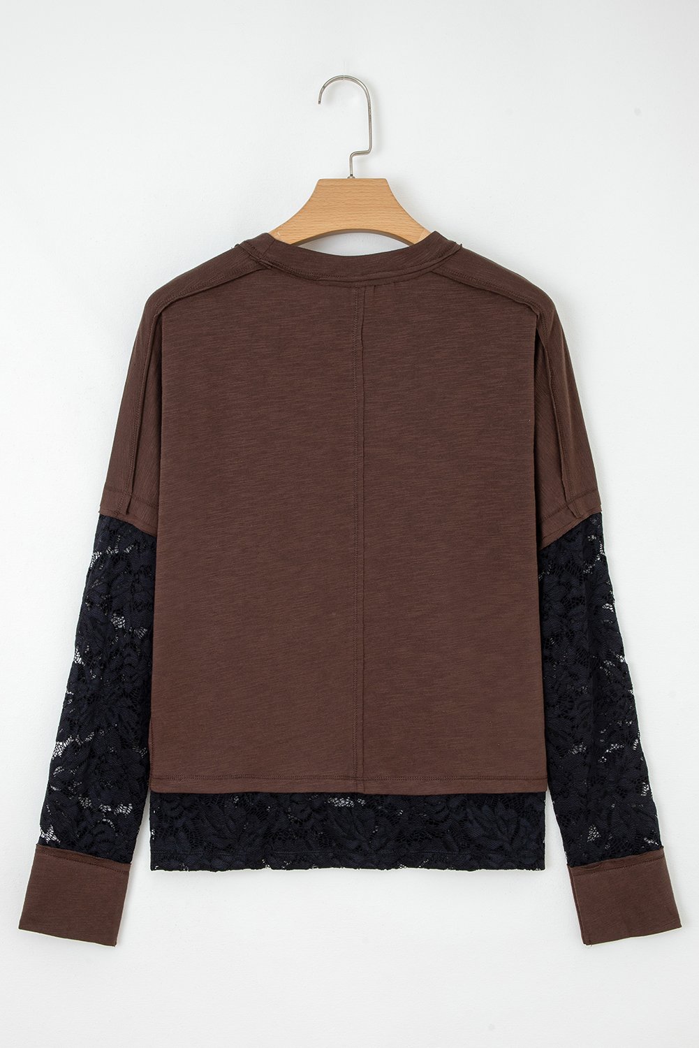 - Long sleeves make this lace tee perfect for spring fall layering.