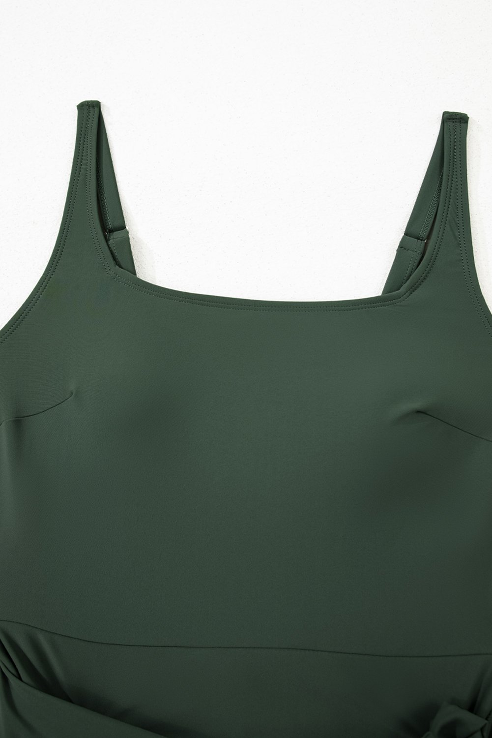 - This solid one piece swim dress enhances a flattering fit silhouette.