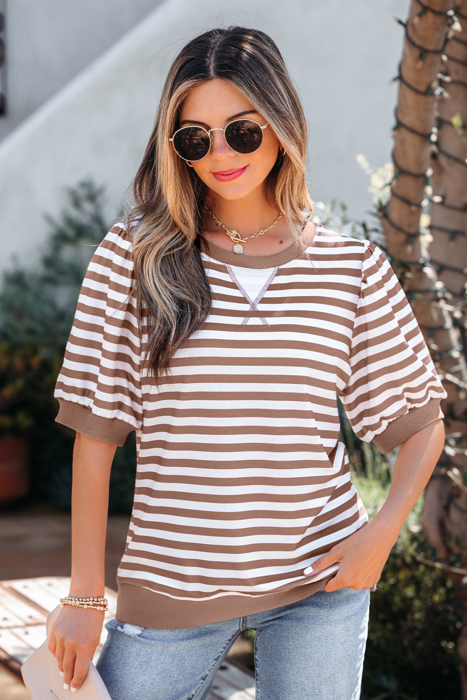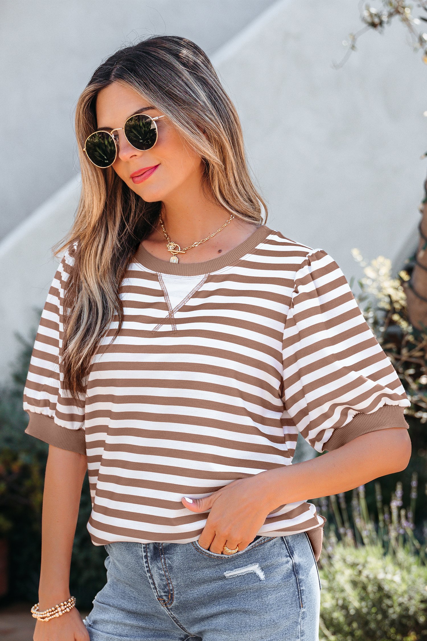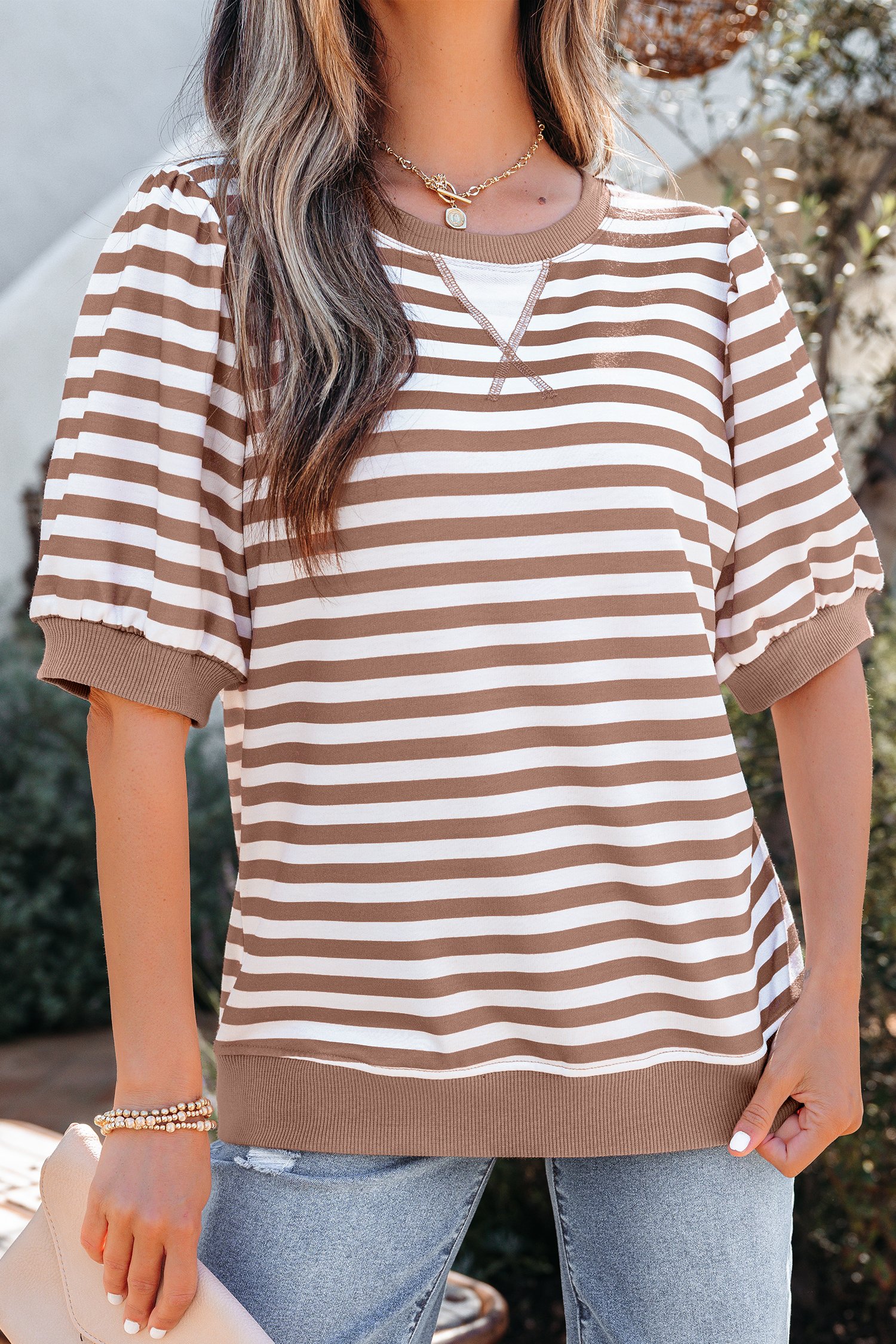 Bubble sleeve design adds subtle volume and feminine style.
