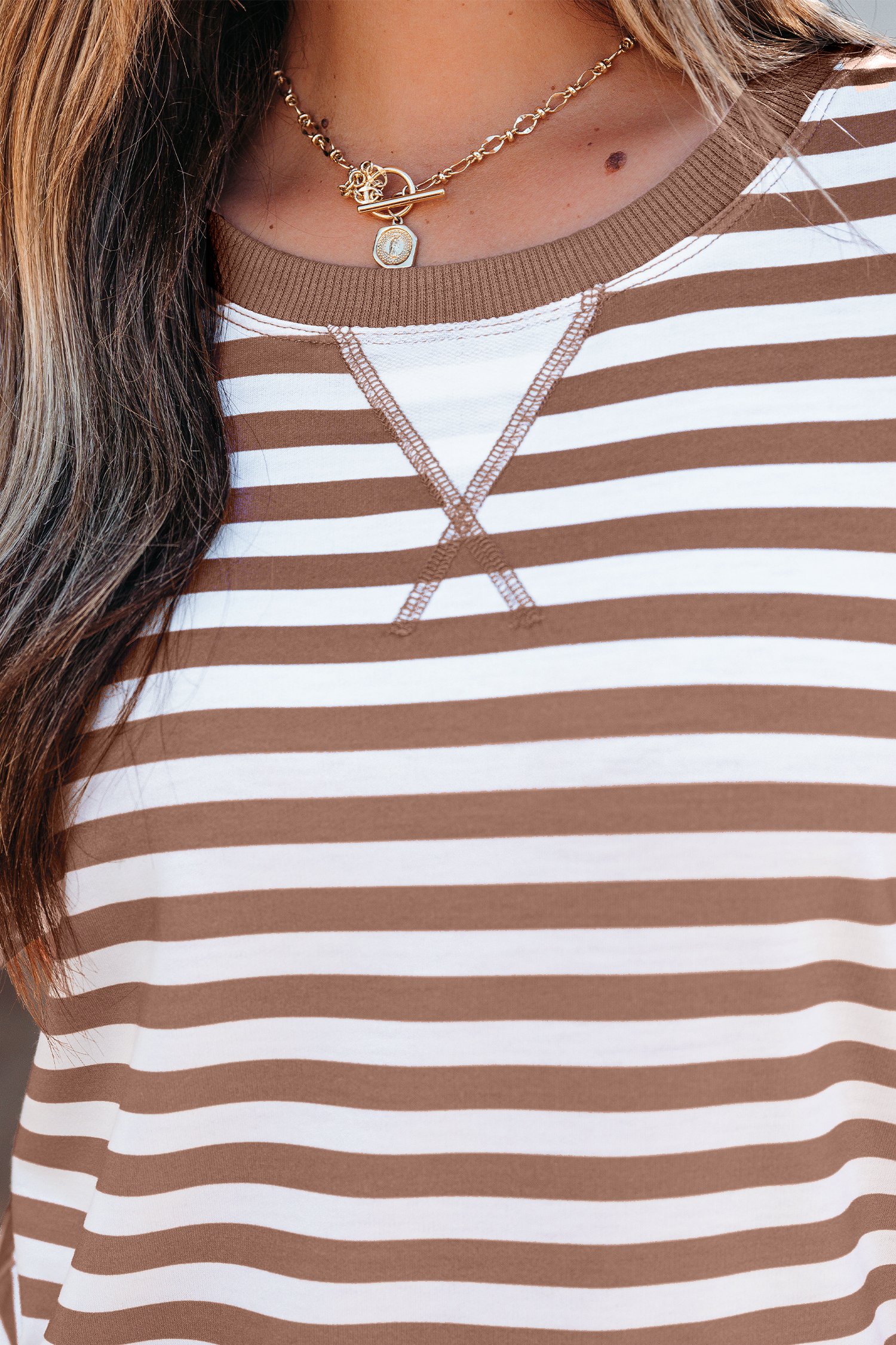 Relaxed fit T shirt offers easy movement and flattering drape.